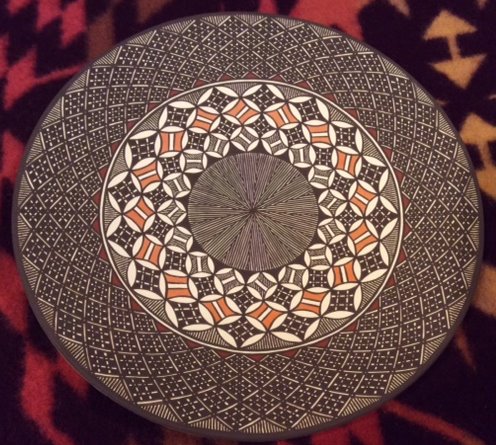 Truly works of art, Rebecca’s pieces are mesmerizing in so many ways, from the incredibly fine lines, to the combination of patterns, to the fact that each piece is made and painted entirely by hand. As a finishing touch, Rebecca prays over each of her pieces upon their completion, wishing for them to bring health and happiness to their new homes. Not only is Rebecca a talented, remarkable artist, but quite a lovely person, and we are so happy to get the opportunity to work with her, learn from her, and promote her. The care she takes to create each piece, and the tradition she draws upon, are admirable, inspiring, and embody the true spirit of Native American art.