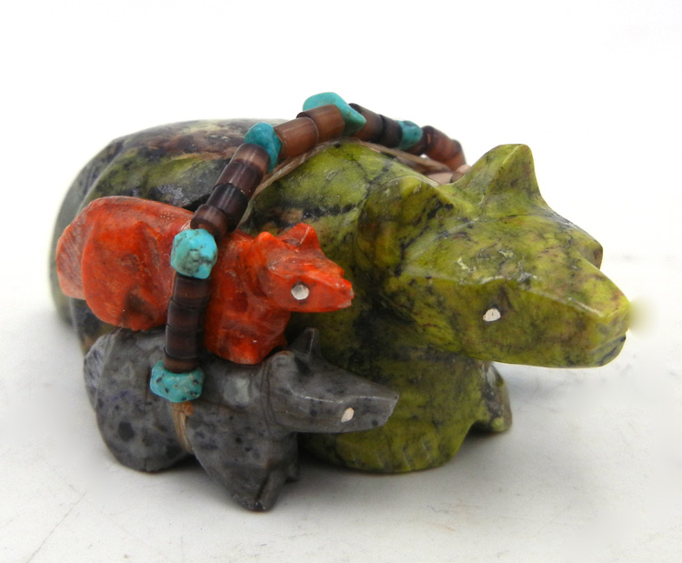 Most Native American artists believe that the shape of stone fetishes “organically” arises from the stone. The natural shape of the uncarved stone suggests the spirit of the animal or figure whose power the fetish will make accessible. This is part of the sacred connection between the artist, the stone, and the cultural significance of the piece.