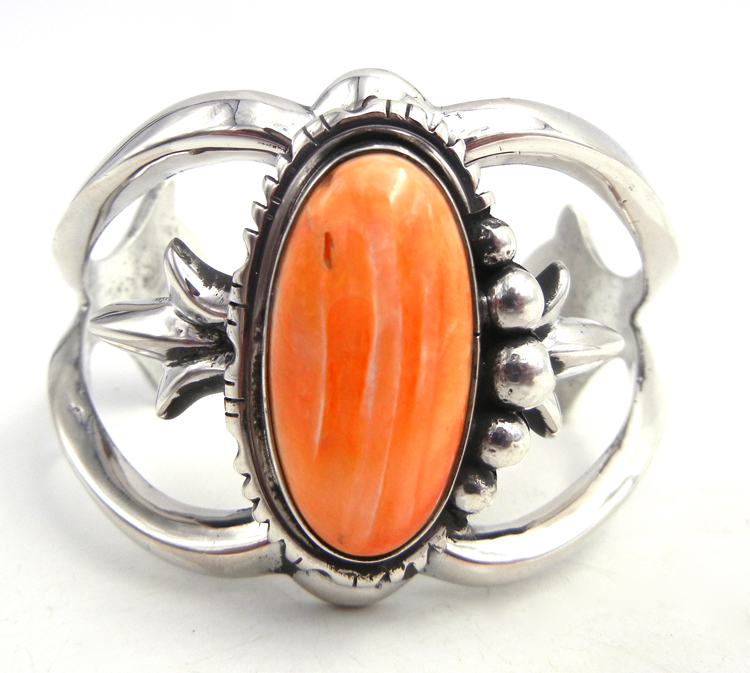 Navajo Elroy Chavez Orange Spiny Oyster Shell and Sterling Silver Cuff Bracelet