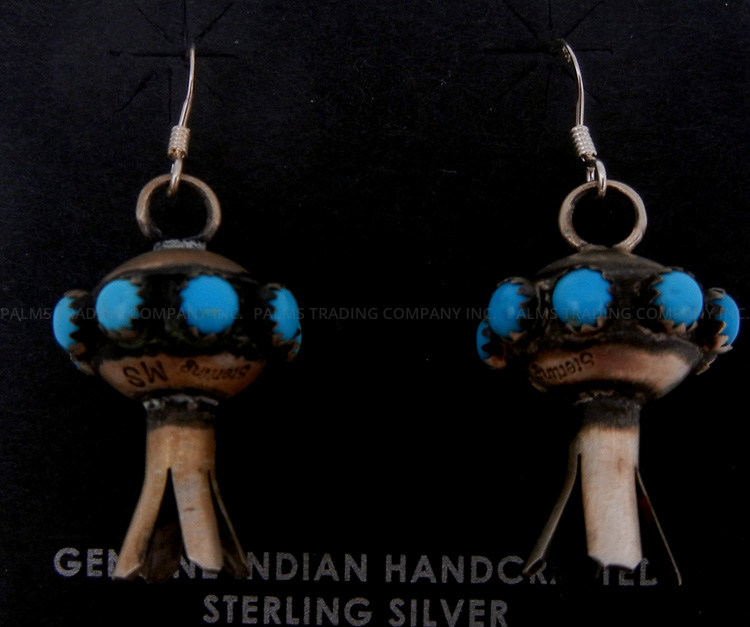 Zuni Jovi Burns Turquoise and Sterling Silver Post Dangle Drop Earrings