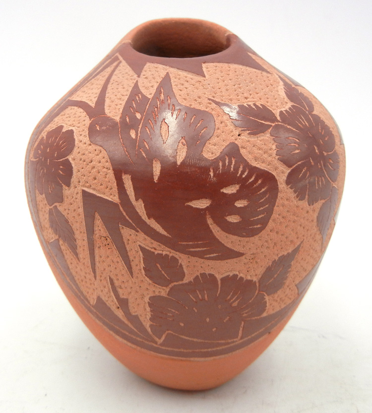 Jemez Alvina Yepa Red Handmade, Etched and Polished Melon Style Vase with Step Rim