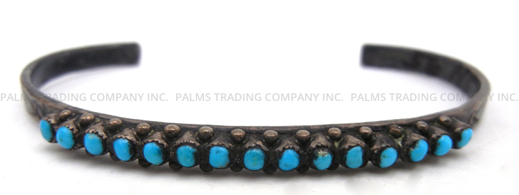 Turquoise is New Mexico’s state gemstone and is used in many traditional and contemporary Native American jewelry pieces, such as Native American bracelets. In addition to turquoise, many Pueblo artists use stones such as coral and spiny oyster when handcrafting their bracelets. Palms Trading Company values both the traditions and craftsmanship of our Native American artists and the quality of materials used. All Native American bracelets are guaranteed to be authentic Native American-made.