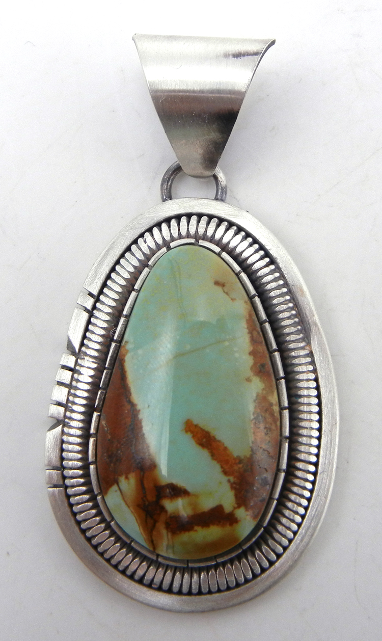 Navajo Bennie Ration Rectangular Turquoise and Sterling Silver Pendant