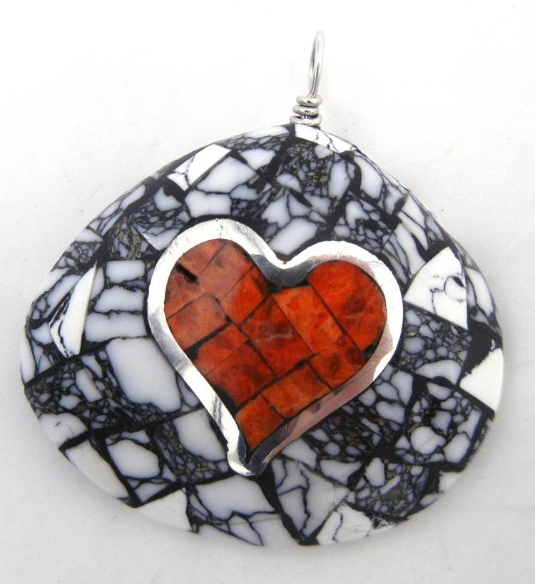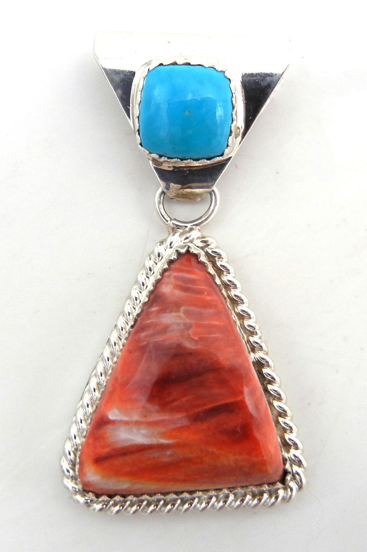 Navajo Red Spiny Oyster Shell and Sterling Silver Pendant