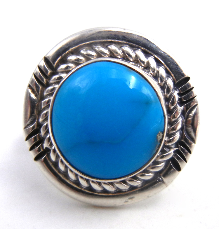 Navajo Pearlene Spencer Small Circular Coral, Turquoise and Sterling Silver Pendant