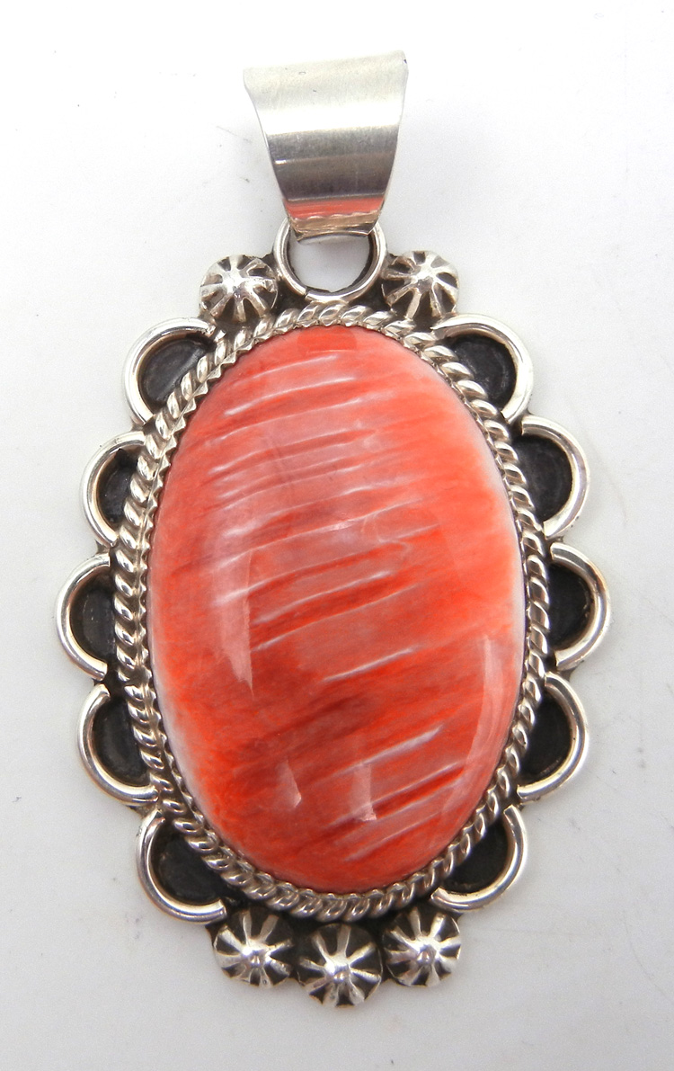 Navajo Walter Vandever Orange Spiny Oyster Shell and Sterling Silver Pendant