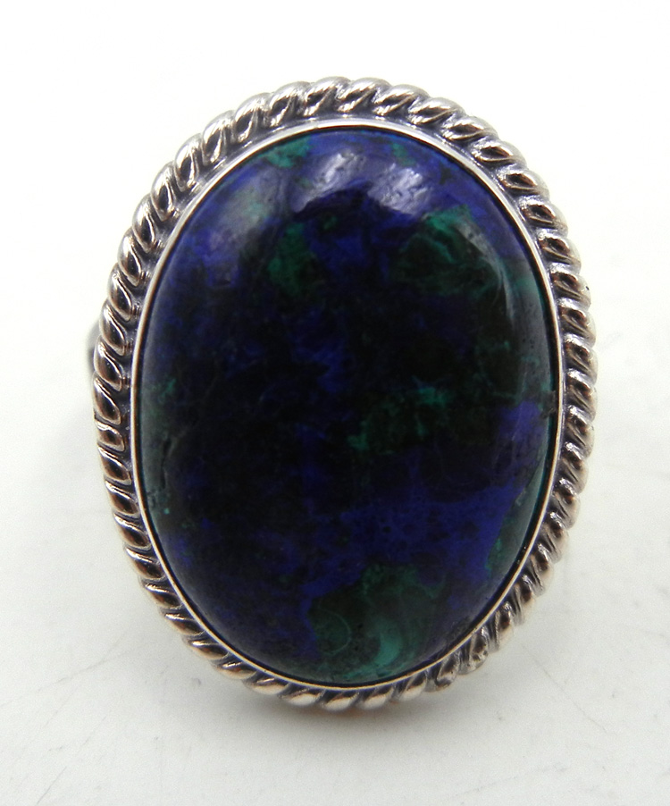 Navajo Large Oval Malachite and Sterling Silver Ring