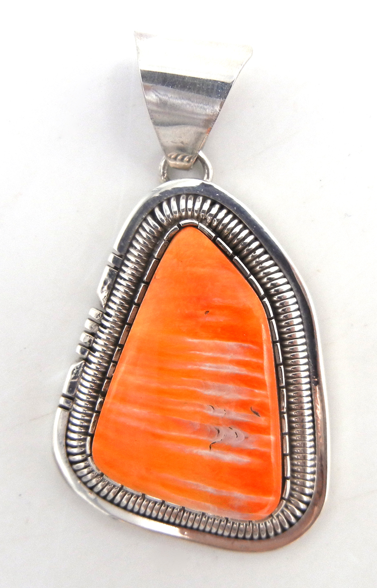 Navajo Wydell Billie Small Red Spiny Oyster and Sterling Silver Pendant