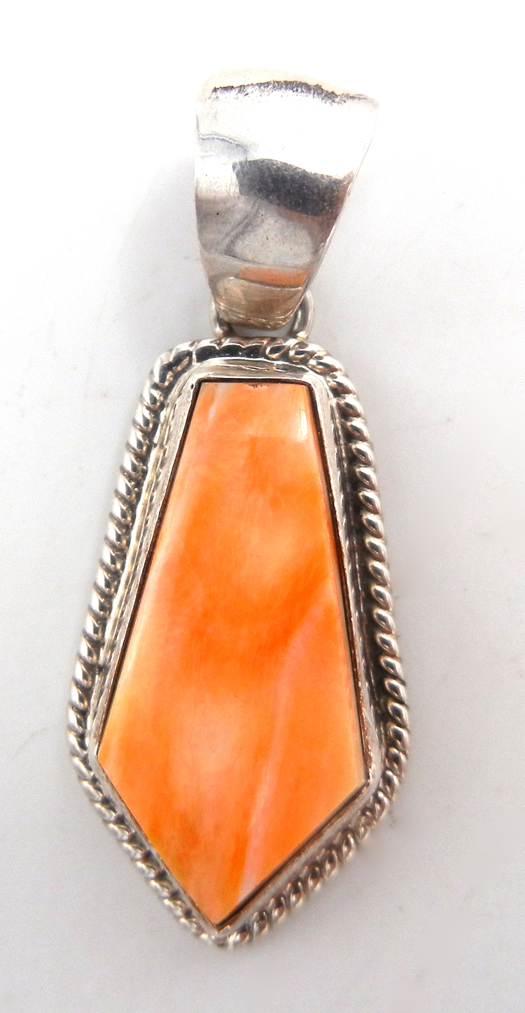 Navajo Orange Spiny Oyster Shell and Sterling Silver Pendant