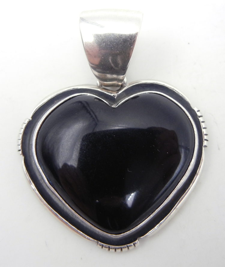 Navajo Mary Tso White Buffalo, Onyx and Sterling Silver Cat Pendant