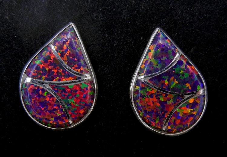 Zuni Small Multi-Stone Inlay and Sterling Silver Balloon Dangle Earrings