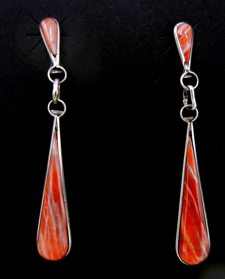 Zuni Small Coral Needlepoint and Sterling Silver Half Hoop Earrings