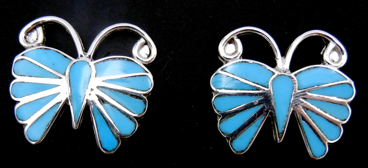 Zuni Turquoise Inlay and Sterling Silver Dragonfly Post Earrings