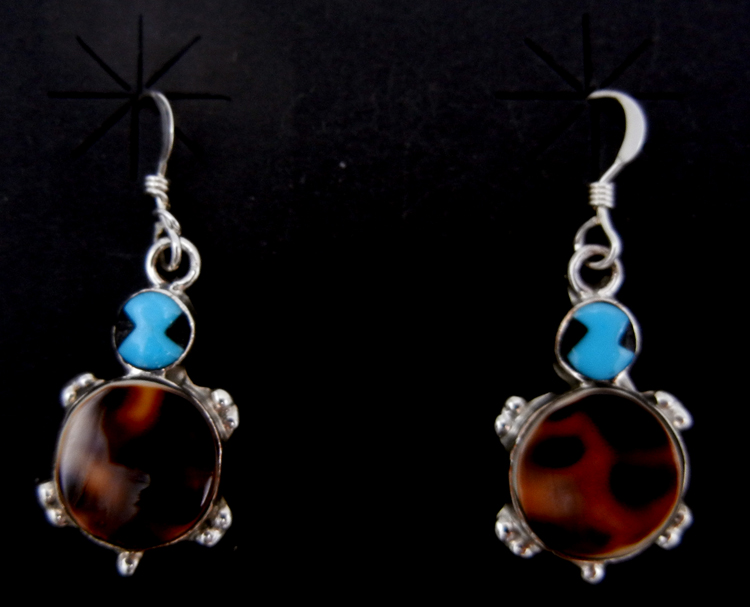 Zuni Small Turquoise and Sterling Silver Inlay Turtle Dangle Earrings