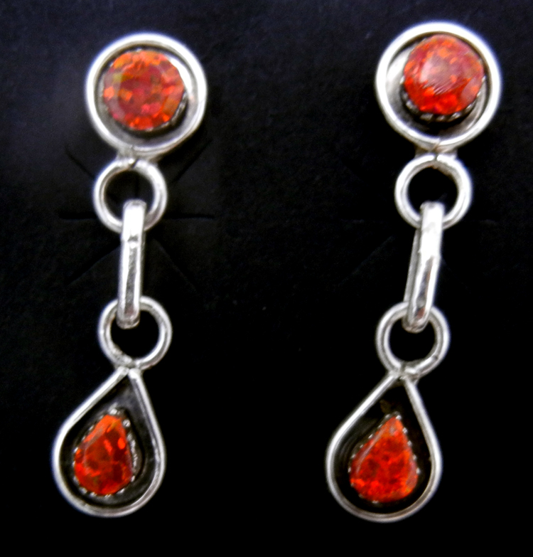 Zuni Coral Petit Point and Sterling Silver Post Dangle Earrings