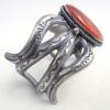 Navajo Eugene Mitchell Sandcast Sterling Silver and Red Spiny Oyster Shell Cuff Bracelet