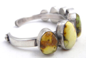 Navajo Tom Lewis Palomino Turquoise and Sterling Silver Row Cuff Bracelet