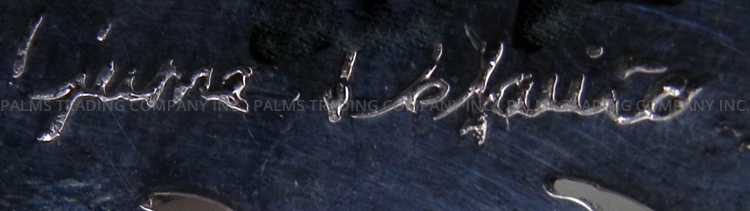 A thin sterling silver panel stamped and cut out to form a feather is set with a single, tear drop shaped piece of bright blue turquoise in this gorgeous pendant by Navajo silversmith June Delgarito.  The stone, containing portions of brown matrix, is set in a simple sterling silver bezel at the top of the feather, while the remainder of the pendant features cut outs along the edges of the sterling panel, which is also stamped with flowing fine lines.  2″ long including bail x 1/2″ wide.