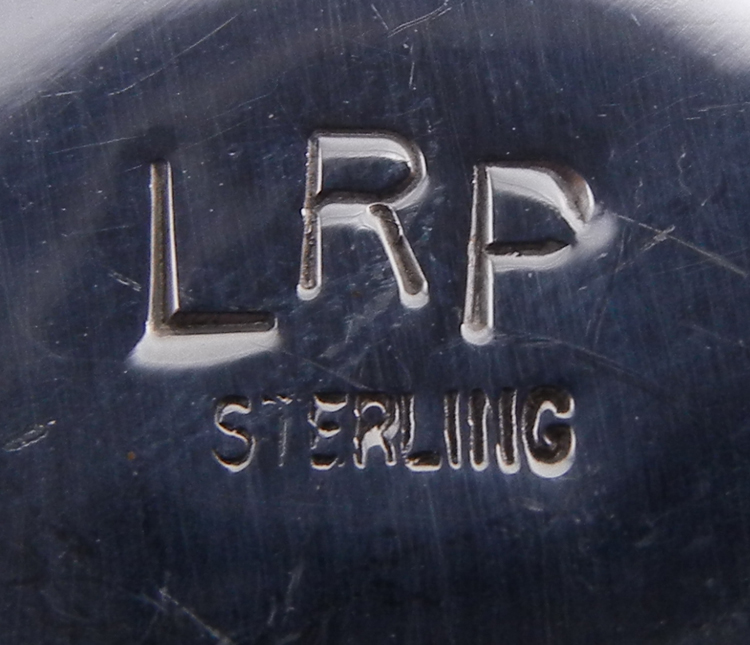 A large, beautiful light blue-green turquoise stone comprises the majority of this eye-catching pendant by Navajo silversmiths Leonard and Racquel Hurley.  The stone contains large portions of brown matrix running throughout, is set in a simple sterling silver bezel and surrounded at the base by a row of applique sterling dots.  Bail is stamped with scallop designs.  2 3/4″ long including bail x 1 1/8″ wide.
