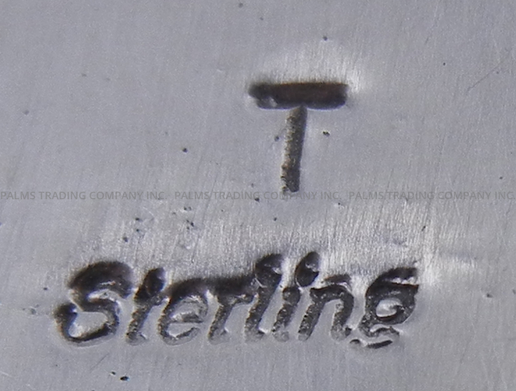 White Buffalo, onyx and sterling silver combine to form an adorable cat in this unique pendant by Navajo silversmith Mary Tso.  A tear drop shaped onyx piece comprises the cat’s head, the stone set in a sawtooth sterling silver bezel and accented with sterling silver ears and whiskers.  An oval piece of White Buffalo makes up the cat’s body, also set in a sawtooth sterling silver bezel and surrounded at the base by a row of applique sterling flower patterns.  A sterling tail curves upward alongside the cat’s body, showcasing applique sterling silverwork.  3 1/4″ long including bail x 1 1/2″ wide.