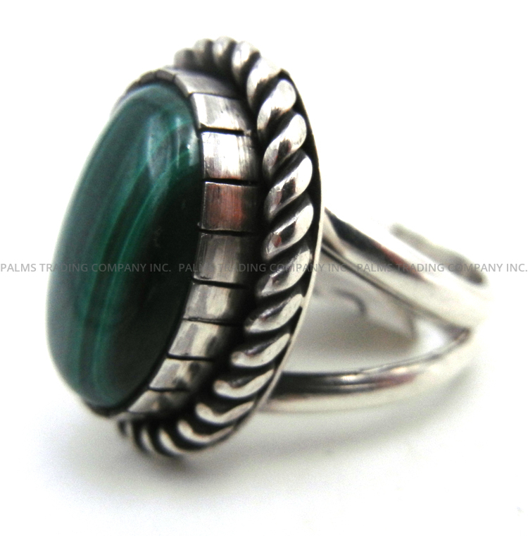 Navajo Walter Vandever Malachite and Sterling Silver Ring