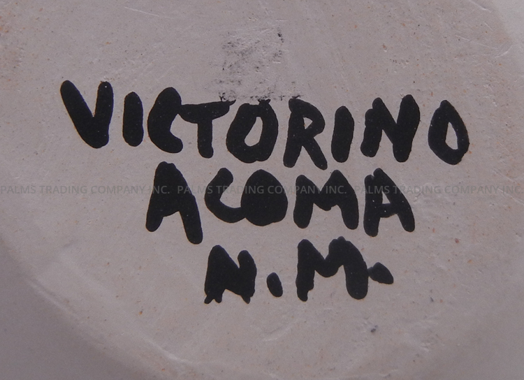 Black and white hand painted weather patterns cover the entire body of this lovely, smaller scale handmade jar by Acoma potter Kathy Victorino.  Patterns include whirlwinds, clouds and lightning, while the rim of the piece is painted solid black and the base is left entirely white.  5″ tall x 5″ wide.
