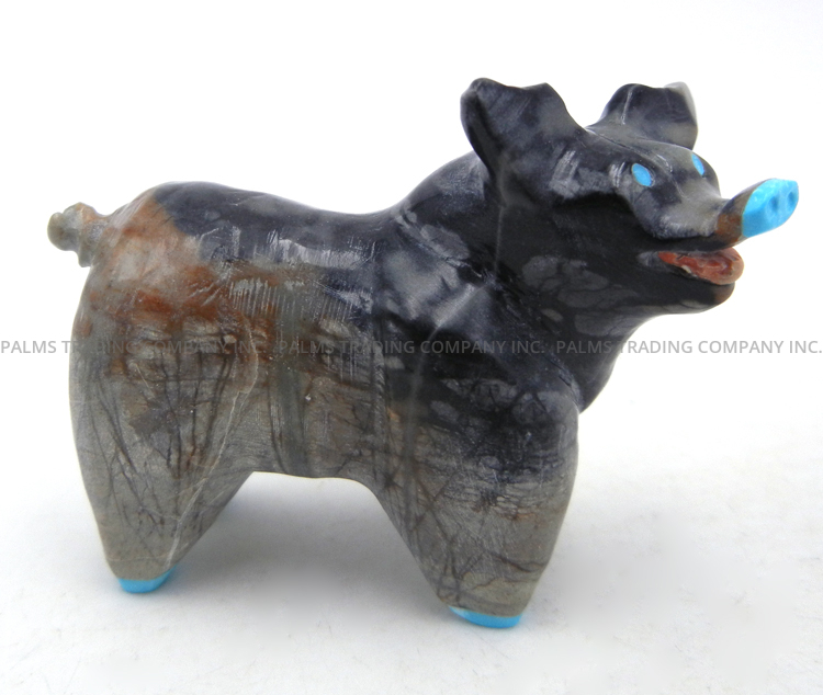 Zuni Freddie Leekya Carved Black Picasso Marble Pig Fetish