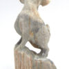 Carved entirely from deer antler, this impressive fetish by Zuni artist Lewis Malie depicts a deer. The deer stands atop a thick base, its body facing forward and head turned, topped with intricately carved antlers. In many Native American cultures, the deer is considered the embodiment of gentleness. 4 1/8″ tall x 1 3/4″ wide x 1 5/8″ deep.